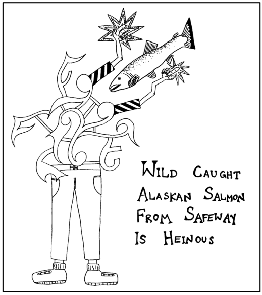 Great fish, socks, shoes. The whole drawing is really good and the typography. Keep it up.